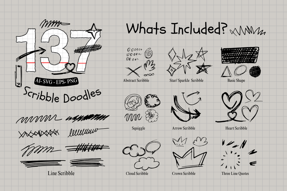 137 Handdrawn Scribble Doodles